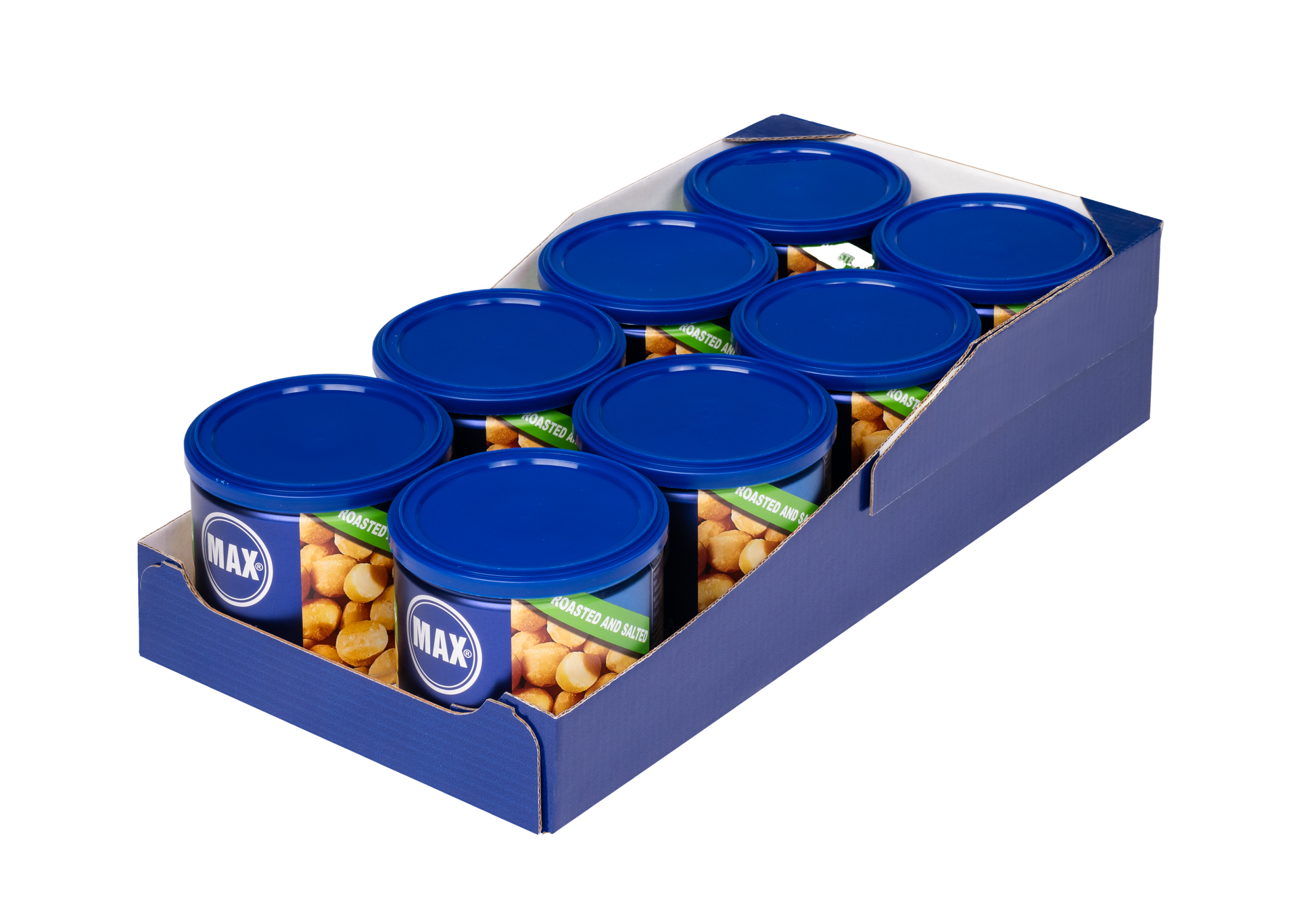 MAX Premium Macadamia Nuts from finest dry roasting, with salt in a box of 8